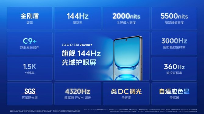 iQOO Z10 Turbo+ 更是凭借超强续航能力横扫,2000nit 全局最大亮度更清晰更通透